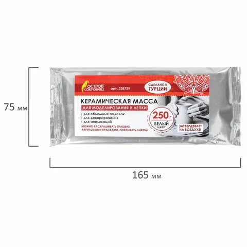 Масса керамическая для лепки ОСТРОВ СОКРОВИЩ, самозатвердевающая, 250 г, белая, 228729