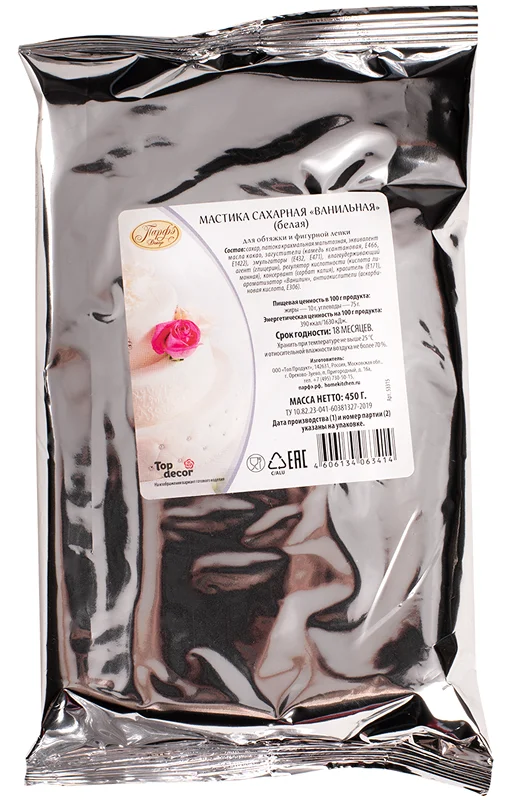 Мастика сахарная Парфэ — пластичная сахарная паста, которая используется для изготовления декоративных элементов (цветов, фигурок, бантов и др.) и обтяжки поверхности тортов. Мастика идеально подходит для украшения свадебных, детских и праздничных тортов.