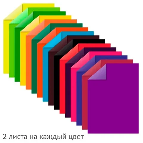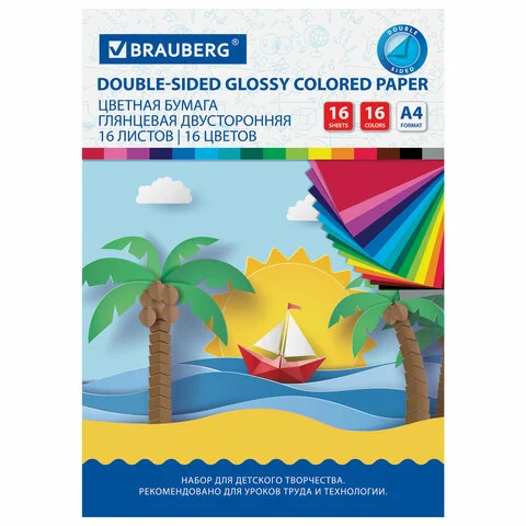 Цветная бумага А4 2-сторонняя мелованная, 16 листов 16 цветов, на скобе, BRAUBERG ЭКО, 200х280 мм, '