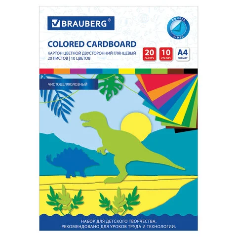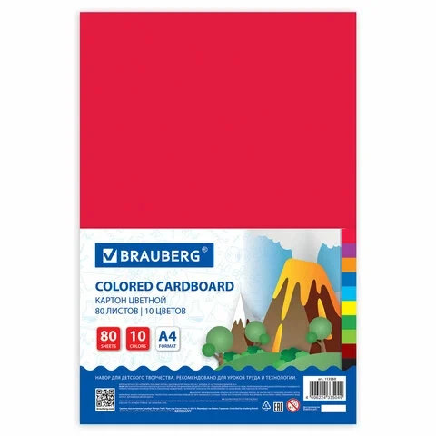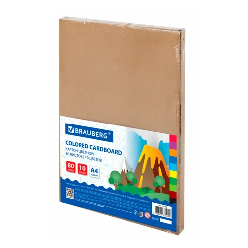 Цветной картон Brauberg 10 цветов, А4, 80 листов, немелованный