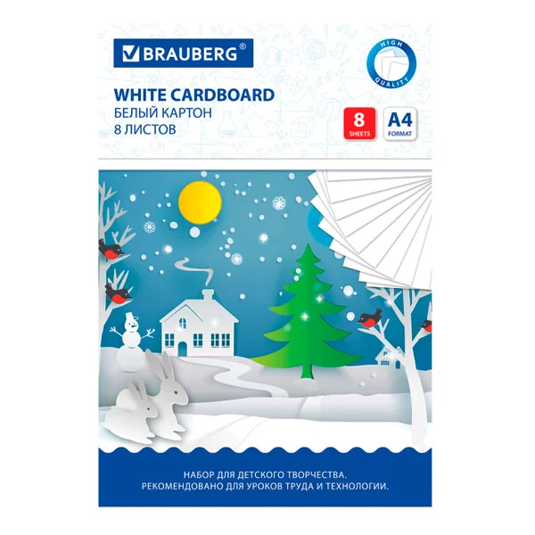 Картон белый А4 немелованный (матовый), 8 листов, в папке, BRAUBERG, 200х290 мм, 'Сказочный домик',