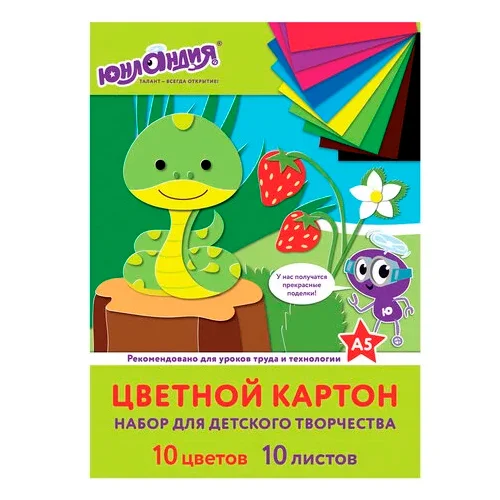 Цветной картон Юнландия 10 цветов, 10 листов, А5, немелованный