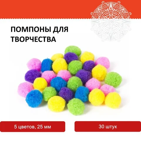 Помпоны для творчества, 5 цветов, 25 мм, 30 шт., ОСТРОВ СОКРОВИЩ, 661424