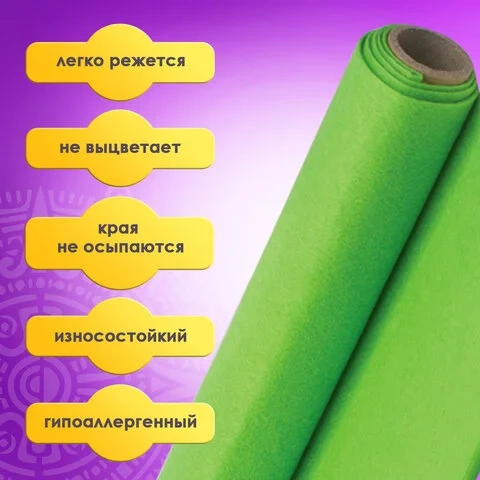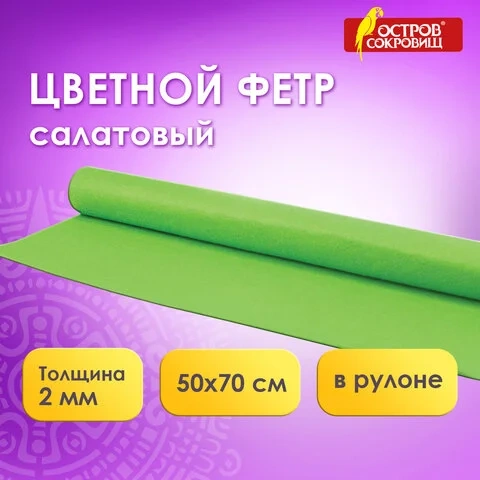 Фетр цветной для творчества Brauberg зеленый, 50х70 см, в рулоне
