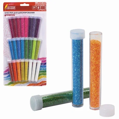 Блестки для декора (глиттер) ОСТРОВ СОКРОВИЩ, НАБОР 24 цвета по 4 грамма, блистер, 662230