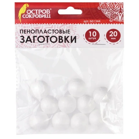 Пенопластовые заготовки для творчества 'Шарики', 10 шт., 20 мм, ОСТРОВ СОКРОВИЩ, 661344
