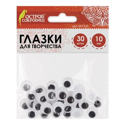 Глазки для творчества, вращающиеся, черно-белые, 10 мм, 30 шт., ОСТРОВ СОКРОВИЩ, 661325