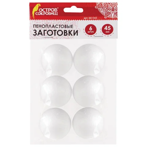 Пенопластовые заготовки для творчества 'Шарики', 6 шт., 45 мм, ОСТРОВ СОКРОВИЩ, 661343