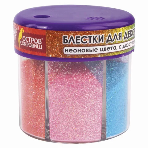 Блестки для декора (глиттер) ОСТРОВ СОКРОВИЩ, НЕОН, в диспенсере с дозатором, 6 цветов по 10 грамм,