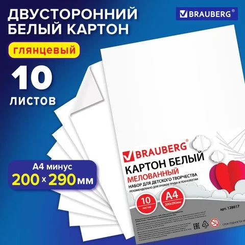 Картон белый Brauberg А4, 235 г/м2, 10 листов