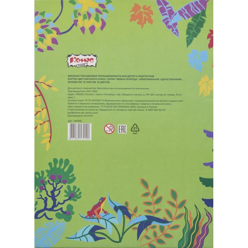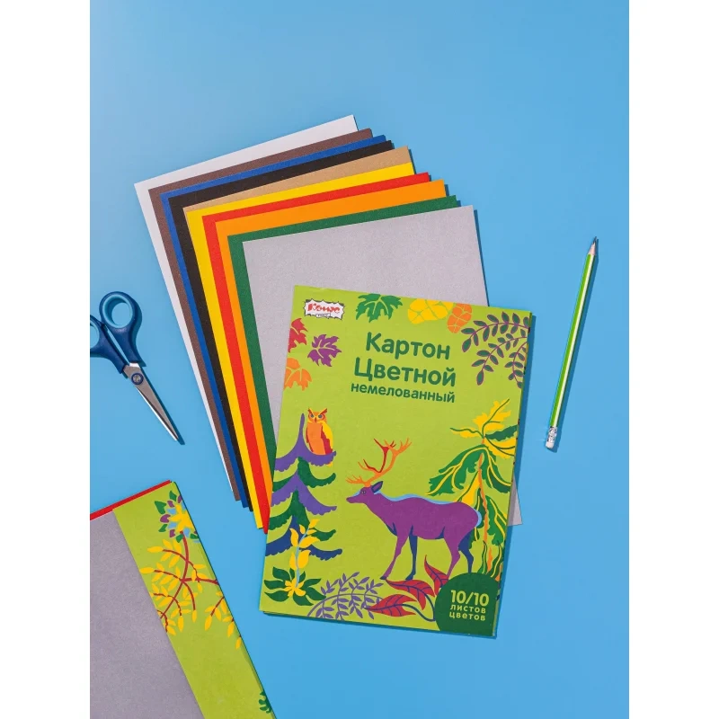 Цветной картон №1 School Живая природа 10 цветов, А4, 10 листов, немелованный