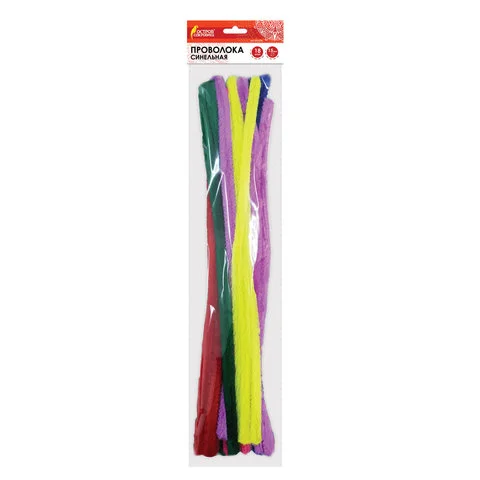 Проволока синельная для творчества 'Пушистая', 6 цв., 18 шт., 1,5х30 см, ОСТРОВ СОКРОВИЩ, 661529