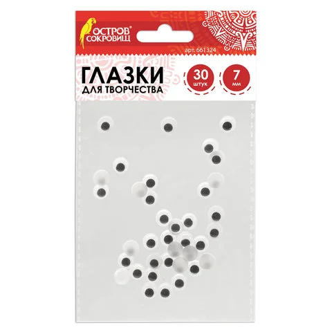 Глазки для творчества, вращающиеся, черно-белые, 7 мм, 30 шт., ОСТРОВ СОКРОВИЩ, 661324