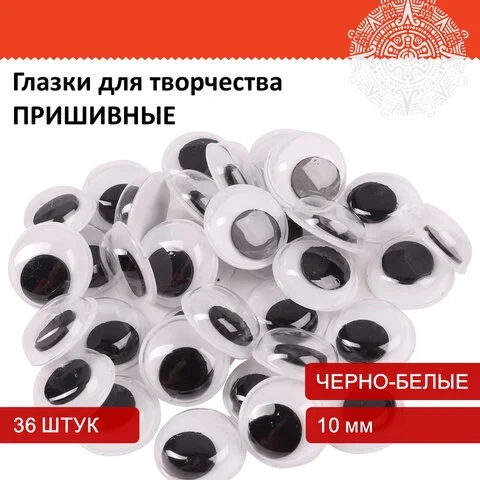 Глазки для творчества пришивные, вращающиеся, черно-белые, 10 мм, 36 шт., ОСТРОВ СОКРОВИЩ, 661382
