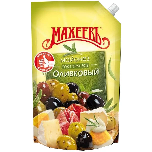 Майонез Махеевъ 'Оливковый' имеет в своем составе натуральное оливковое масло, прекрасно подходит как для рыбы и мяса, так и для теста и салата.