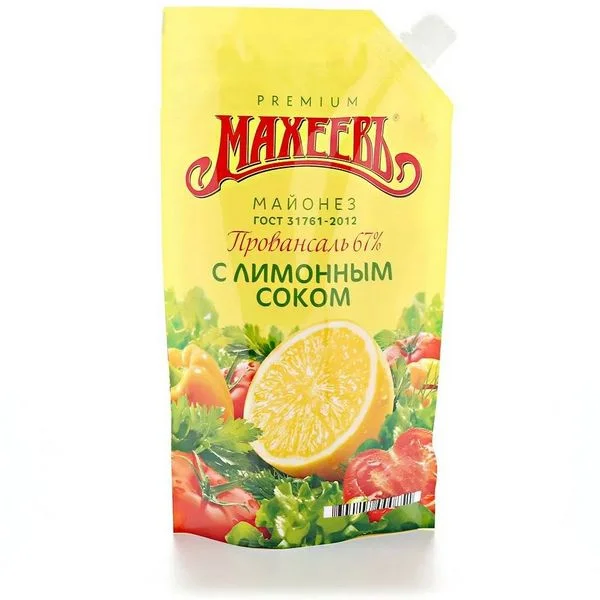 Майонез Махеевъ Провансаль с лимонным соком 50,5% жирности обладает высокой калорийностью, что делает его сочным дополнением к салатам, либо маринадам. На его основе можно готовить густые соусы для мяса, рыбы, курицы и баранины. Махеевъ Провансаль подходит для добавления в макаронные пасты и густые супы. Майонез обладает нежной однородной консистенцией с приятным натуральным ароматом. Привкус лимона освежит насыщенный вкус соуса.