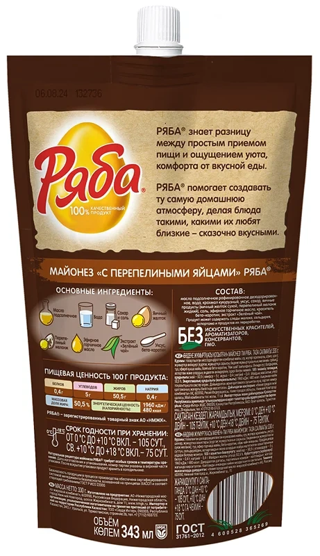 Майонез Ряба с перепелиными яйцами ГОСТ, 330г