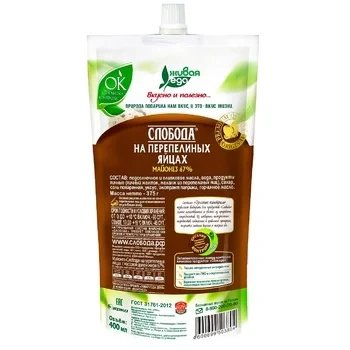 Майонез Слобода На перепелиных яйцах, 400мл, 67%