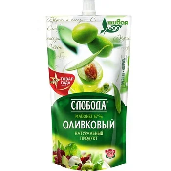 Слобода Оливковый — классический майонез с добавлением масла испанских оливок. В состав майонеза входят только натуральные ингредиенты: свежие яичные желтки, отборные масла, уксус и специи. Майонез Оливковый обладает нежной кремовой текстурой и насыщенным вкусом. Он прекрасно подходит для заправки салатов, гармонирует с мясом и рыбой, а также является идеальной основой для маринадов. Попробуйте натуральный майонез Слобода и сделайте любимые блюда еще вкуснее! Слобода — бренд, который знают и любят многие россияне уже на протяжении 30 лет. Все продукты Слобода отличаются настоящим вкусом и неизменным высоким качеством. Они не просто соответствуют ГОСТу, а обладают настоящей силой природы и производятся с заботой о будущем!