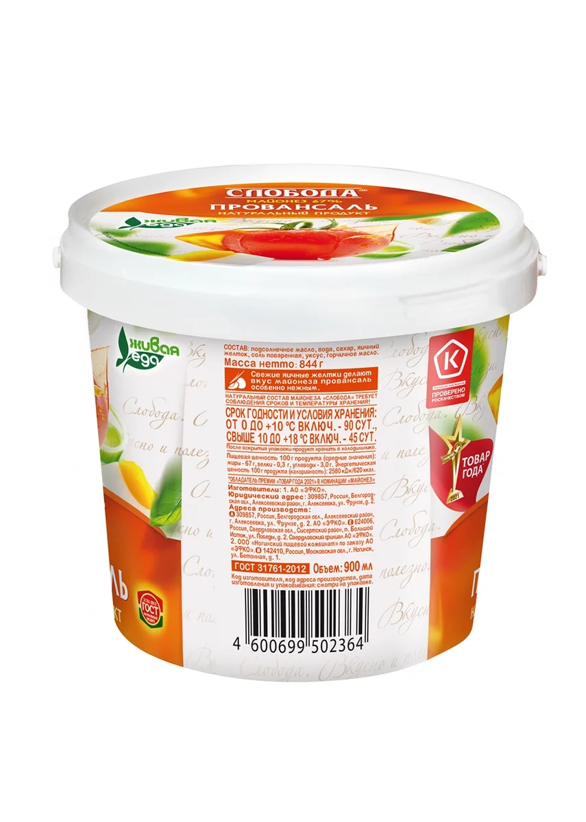 Слобода Провансаль — классический майонез, приготовленный по традиционному рецепту. В состав майонеза входят только натуральные ингредиенты: свежие яичные желтки, подсолнечное и горчичное масла, уксус и специи. Майонез Провансаль обладает насыщенным вкусом и станет отличным дополнением к вашим любимым блюдам. Его можно добавить в любимый суп, использовать как заправку для салата или в качестве маринада для рыбы и мяса. Дайте волю кулинарной фантазии и удивляйте близких оригинальными рецептами! Слобода — бренд, который знают и любят многие россияне уже на протяжении 30 лет. Все продукты Слобода отличаются настоящим вкусом и неизменным высоким качеством. Они не просто соответствуют ГОСТу, а обладают настоящей силой природы и производятся с заботой о будущем!