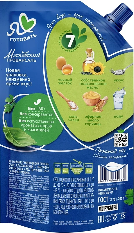 Майонез Я люблю готовить Московский провансаль 67%, 390мл