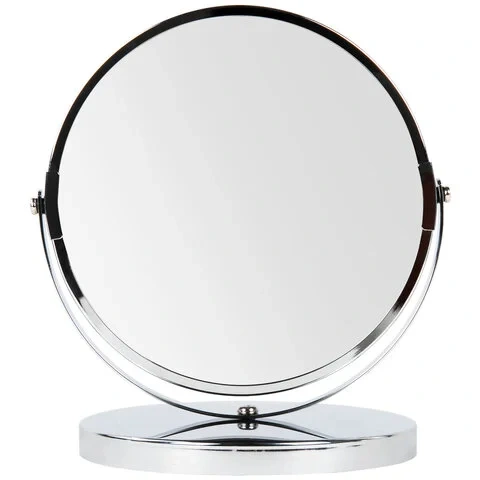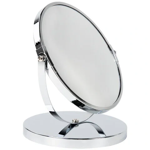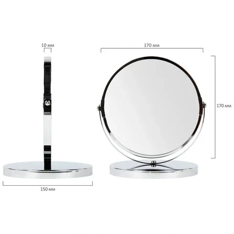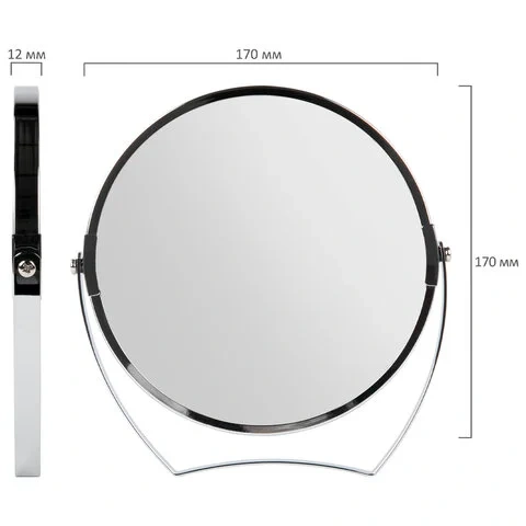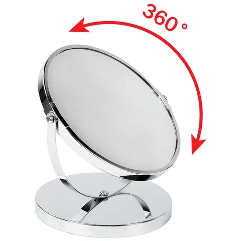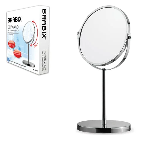 Зеркало настольное BRABIX, круглое, диаметр 17 см, двустороннее, с увеличением, металлическая рамка,
