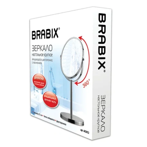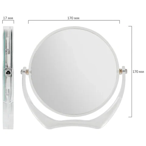 Зеркало косметическое настольное круглое, диаметр 17 см, двустороннее с увеличением, BRABIX, 602852