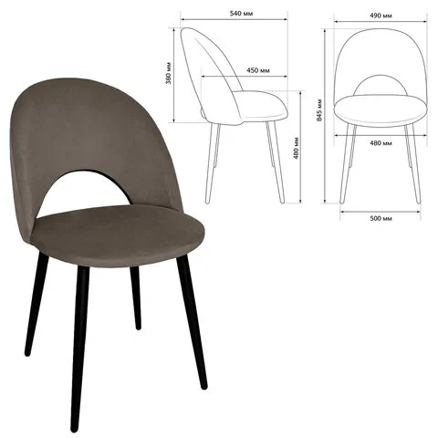 Стул для кафе Brabix Luna CF-070 велюр коричневый, каркас металлический усиленный черный, 2шт/уп