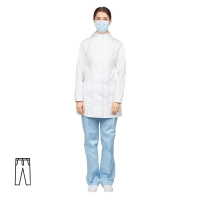 Брюки женские М-14-БР прямые изготовлены из ткани Санторини ( 55% хлопок 45% полиэстер) плотностью 150 г/кв. м с водоотталкивающей пропиткой. Цвет голубой, размер 48-50, рассчитаны на рост 170-176. Пояс притачной на резинке. Брюки с застроченными стрелками на передних половинках. На правой передней половинке брюк расположен накладной карман, который одной стороной входит в боковой шов. Стирку брюк необходимо производить в обычном режиме, не превышая температуру 40 градусов Цельсия. Запрещено отбеливать, разрешена химчистка в обычном режиме. Сушить в подвешенном состоянии не отжимая, утюжить при температуре не выше 150 градусов. Брюки относятся к спецодежде для защиты от общих производственных загрязнений.