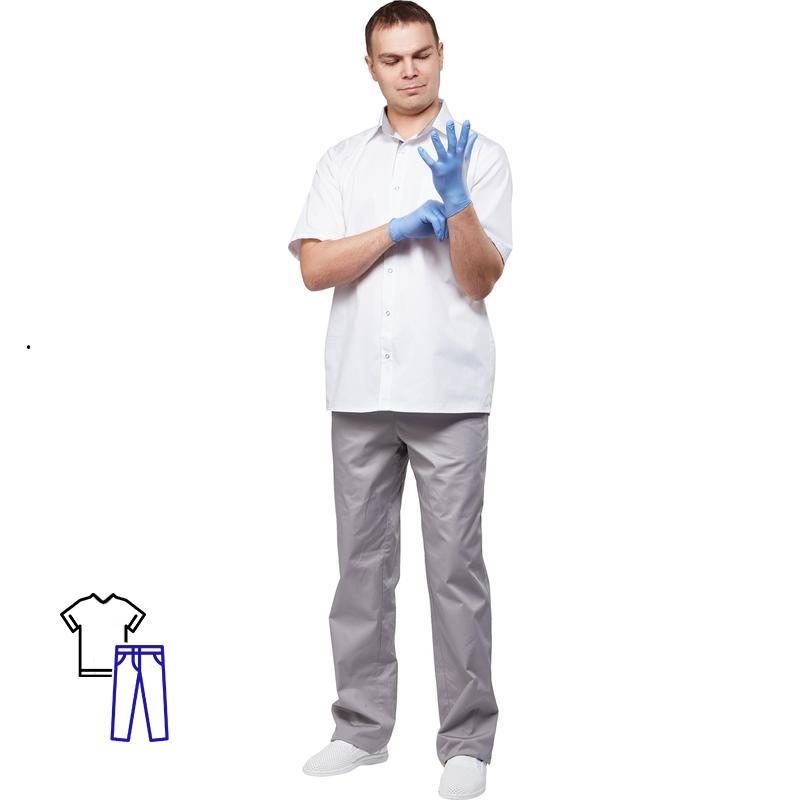 Медицинский костюм мужской (р.48-50) 170-176, бело-серый, 1 шт