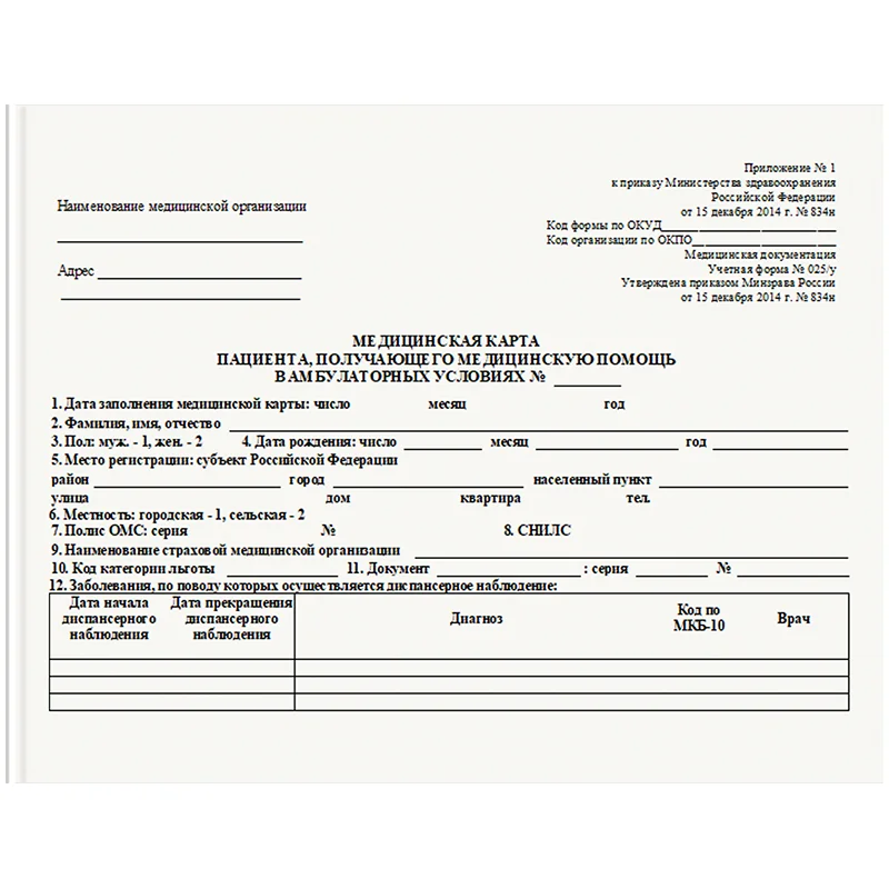 | Утвержденная форма | 025/у |