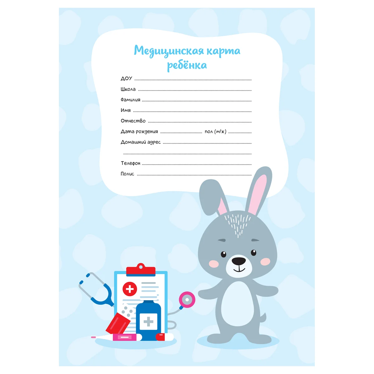Медицинская карта ребенка OfficeSpace, 16л, А4 (205*290мм), форма 026/у-2000, блок офсет, для мальчи