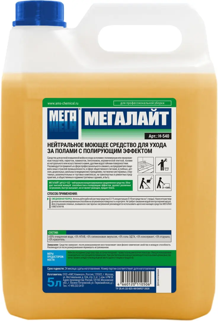 Моющее средство для полов Мега Мегалайт 5л, нейтральное, с полирующим эффектом, Н540