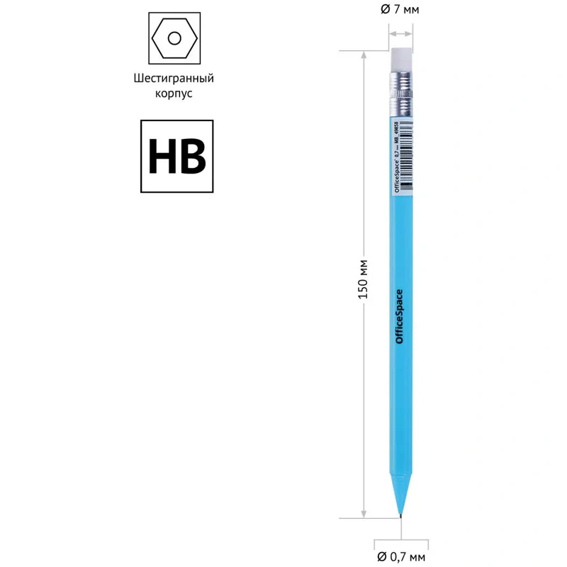 Карандаш механический OfficeSpace, 0,7мм, с ластиком, ассорти