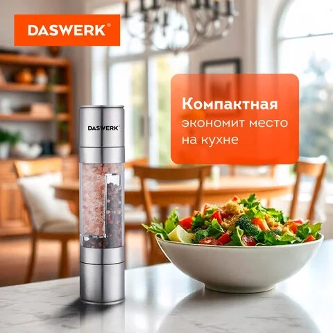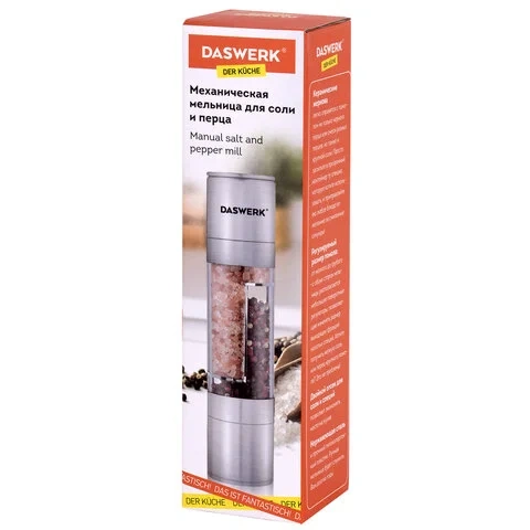 Механическая мельница для соли и перца 2 в 1, 4 уровня помола, нержавеющая сталь, DASWERK, 456627