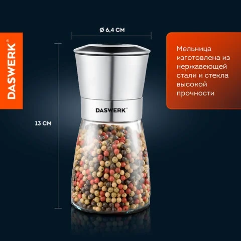 Механические ручные мельницы для соли и перца, набор 2 шт., нержавеющая сталь, DASWERK, 456628