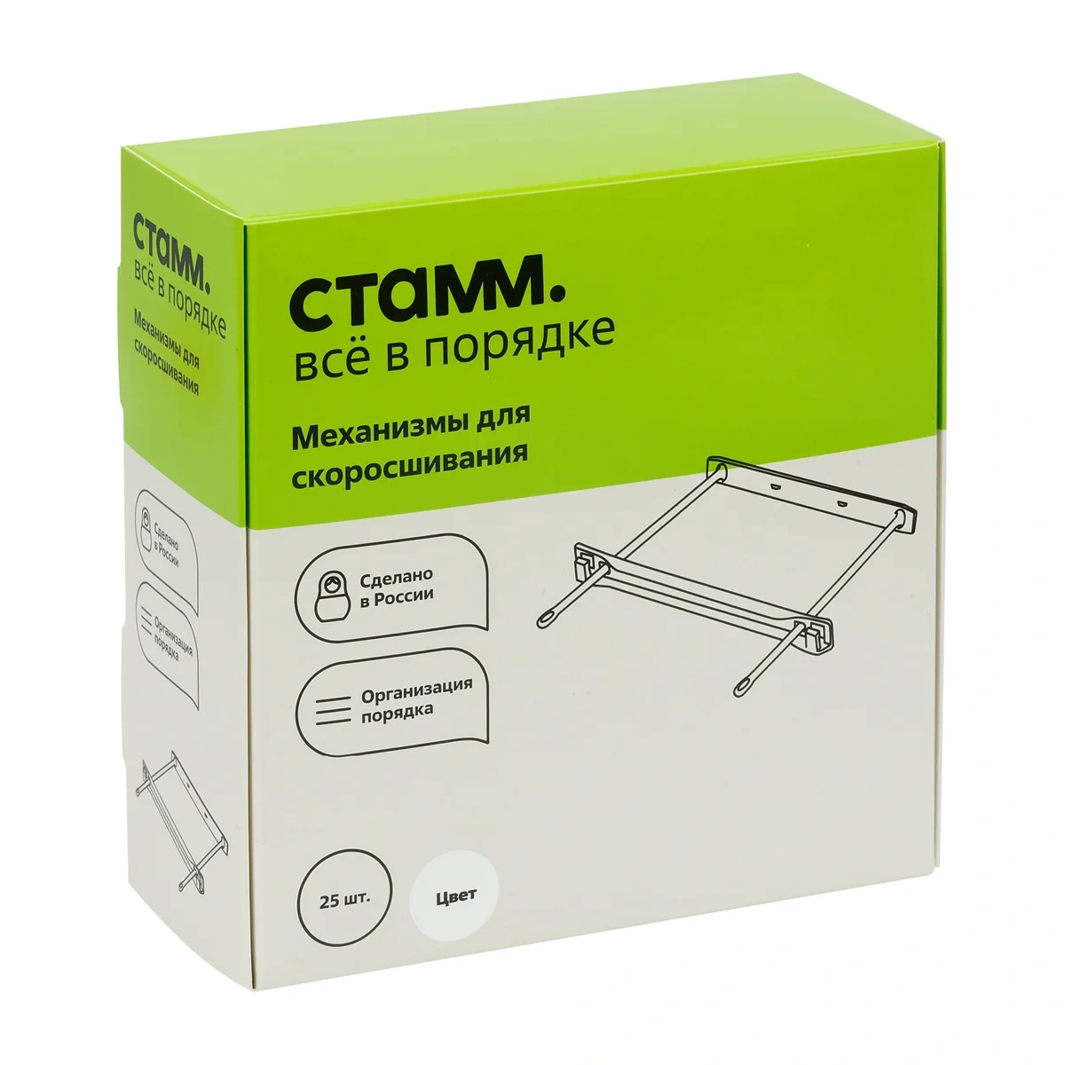 Механизмы для скоросшивания «СТАММ» предназначены для архивирования перфорированной документации. Одно изделие рассчитано на сшивание до 600 листов. На механизмах из качественного полипропилена предусмотрен фиксатор, который позволяет надёжно закрепить документы. Длина ножек составляет 10 см.