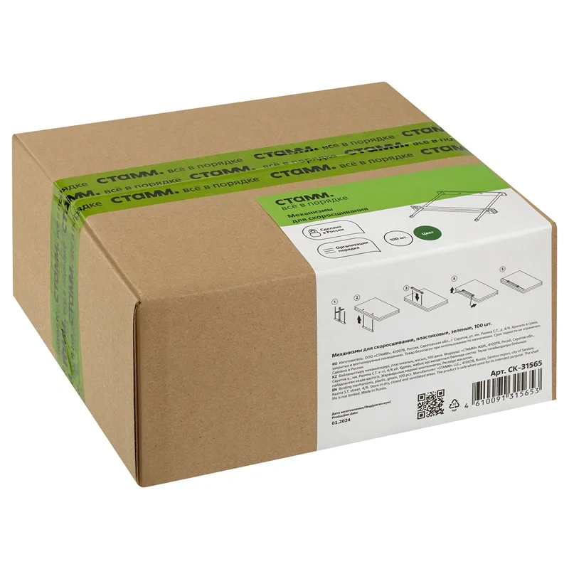 Механизмы для скоросшивания «СТАММ» предназначены для архивирования перфорированной документации. Одно изделие рассчитано на сшивание до 600 листов. На механизмах предусмотрен фиксатор, который позволяет надёжно закрепить документы. Длина ножек изделия составляет 10 см. В наборе 100 штук механизмов. Упаковка – картонная коробка, дополненная изображением пошаговой инструкции по применению изделий. Цвет механизмов – зелёный. Изготовлены из качественного полипропилена.