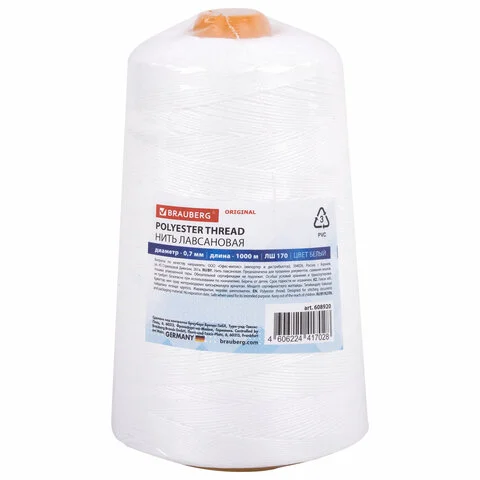 Нить лавсановая для прошивки, БЕЛАЯ диаметр 0,7 мм, 1000 м, ЛШ 170, BRAUBERG ORIGINAL, 608920