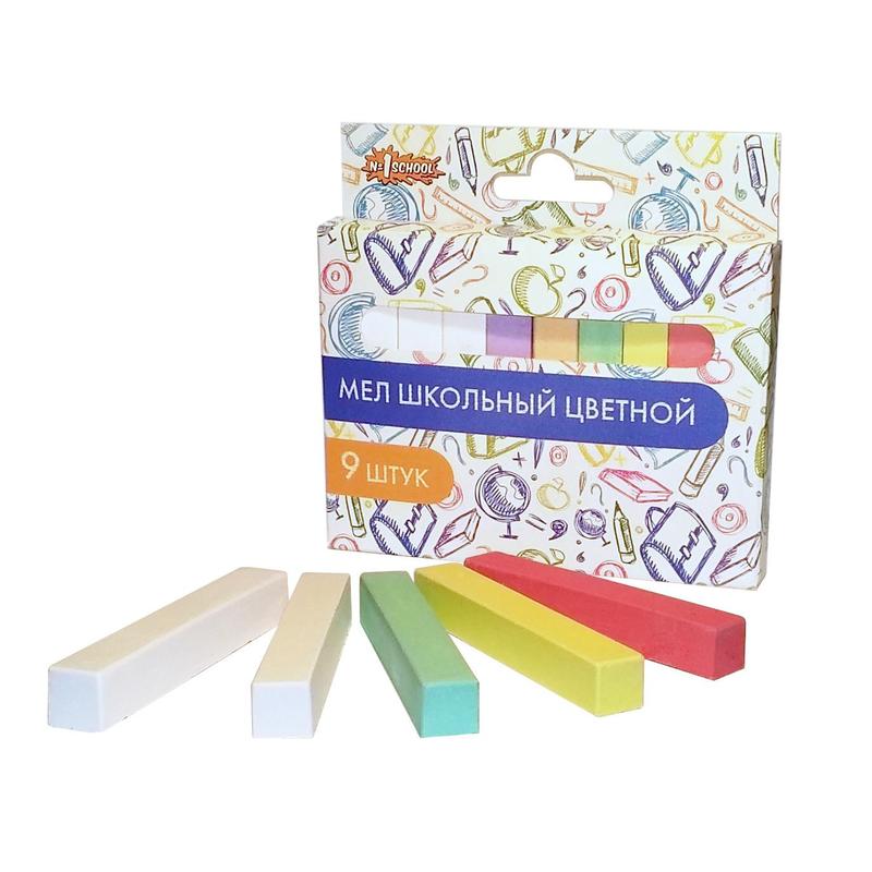 Мел школьный №1 School Отличник цветной 9 шт(6 цветных+3 белых)