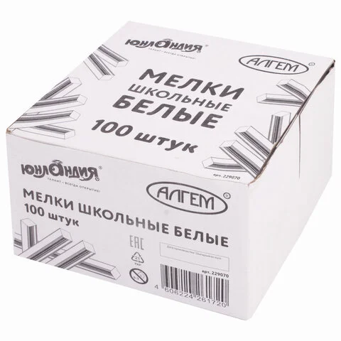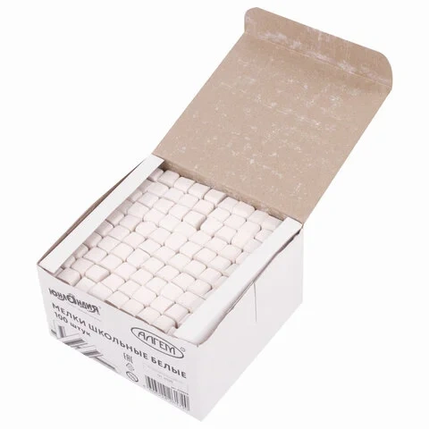 Мел белый ЮНЛАНДИЯ (Алгем), натуральный, набор 100 штук, квадратный, 229070