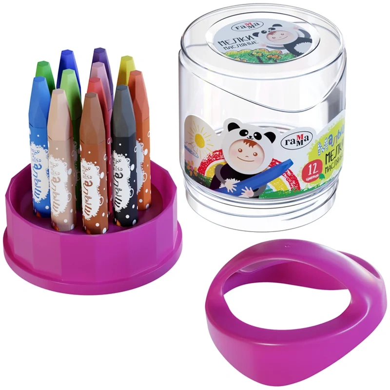 Мелки масляные Гамма 'Малыш', 12цв., шестигранные, пластиковый стакан-подставка
