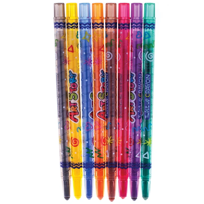 Набор ярких восковых карандашей Crown 'ArtStory' с выкручивающимся стержнем отличаются яркостью и стойкостью цвета, легко смешиваются, создавая огромное количество оттенков.