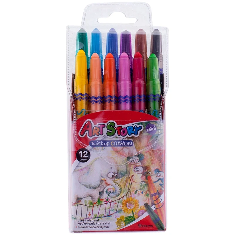 Мелки восковые Crown Art Story mini 12 цветов, выкручивающийся стержень