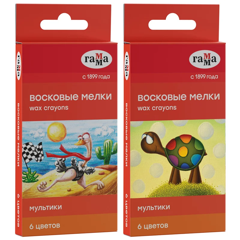 Набор из 6 ярких цветных восковых мелков ГАММА серии «Мультики» отлично подойдёт для рисования на бумаге, картоне и любой шероховатой поверхности. Мелки имеют круглую форму, длина мелка составляет 90 мм, а диаметр корпуса — 8 мм. В наборе 6 ярких цветов: жёлтый, зелёный, синий, красный, чёрный, коричневый. Они идеальны для первых начинаний ребенка в рисовании и раскрашивании, так как они удобно лежат в руке. Мелки производятся на основе натуральных растительных компонентов: воска и пигментов. Мелки не липнут к рукам и не пачкают их, не имеют выраженного химического запаха. Каждый мелок обёрнут в бумажную гильзу и уже заточен.