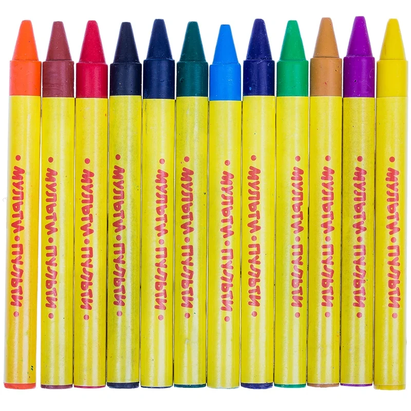 Набор из 12 восковых мелков «Мульти-Пульти» серии «Енот на острове Пасхи» отлично подходит для рисования и воплощения смелых творческих идей. В наборе 12 ярких цветов: жёлтый, зелёный, синий, красный, чёрный, коричневый, оранжевый, светло-коричневый, голубой, светло-зелёный, тёмно-синий, фиолетовый. Мелки имеют круглую форму, длина мелка составляет 90 мм, а диаметр корпуса — 8 мм. Они легко наносятся на бумагу, картон, дерево, керамику. Особых условий хранения и транспортировки не требуют. Подходят для детей старше 3-х лет. Каждый мелок представлен в бумажной обёртке.