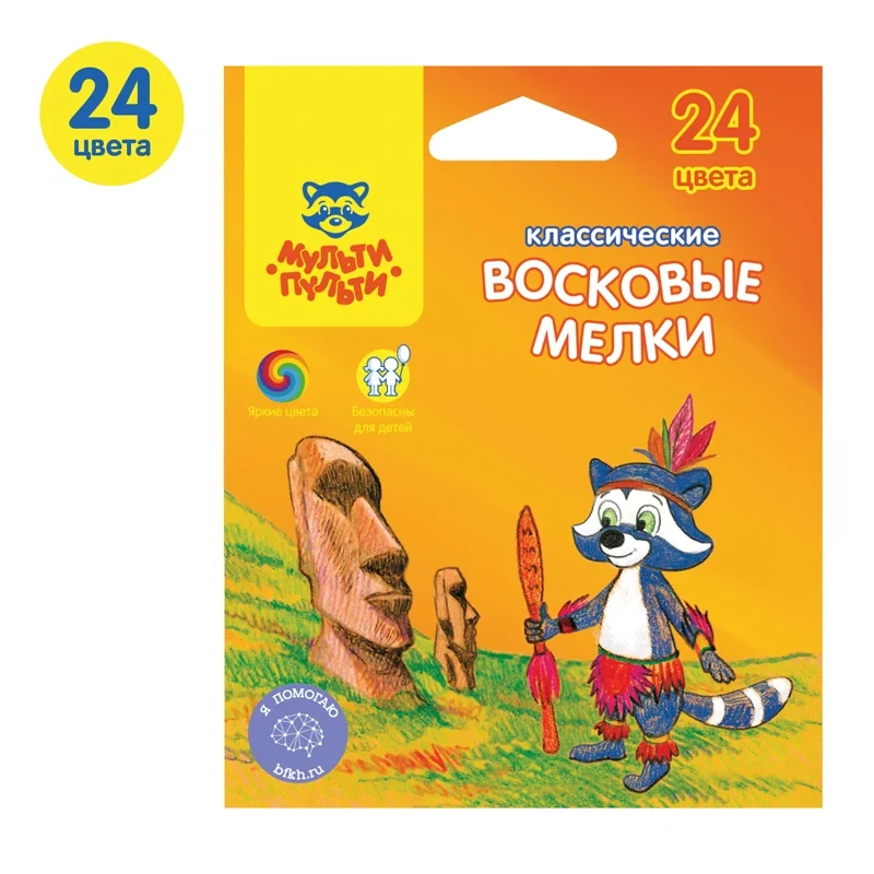Мелки восковые Мульти-Пульти 'Енот на острове Пасхи', 24цв., круглые, картон, европодвес