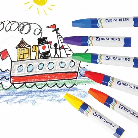 Мелки восковые Brauberg 6 цветов, на масляной основе