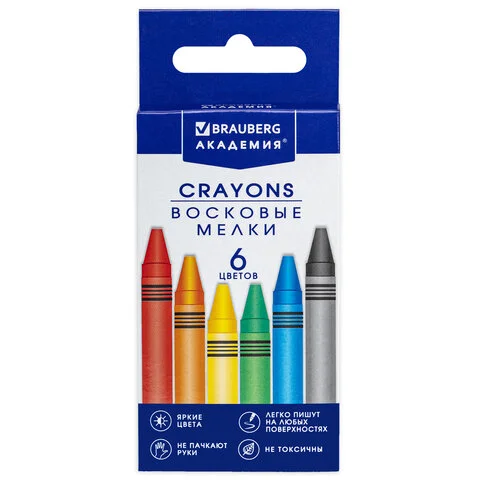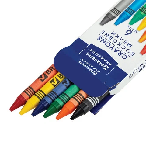 Восковые карандаши BRAUBERG 'АКАДЕМИЯ', НАБОР 6 цветов, 227282