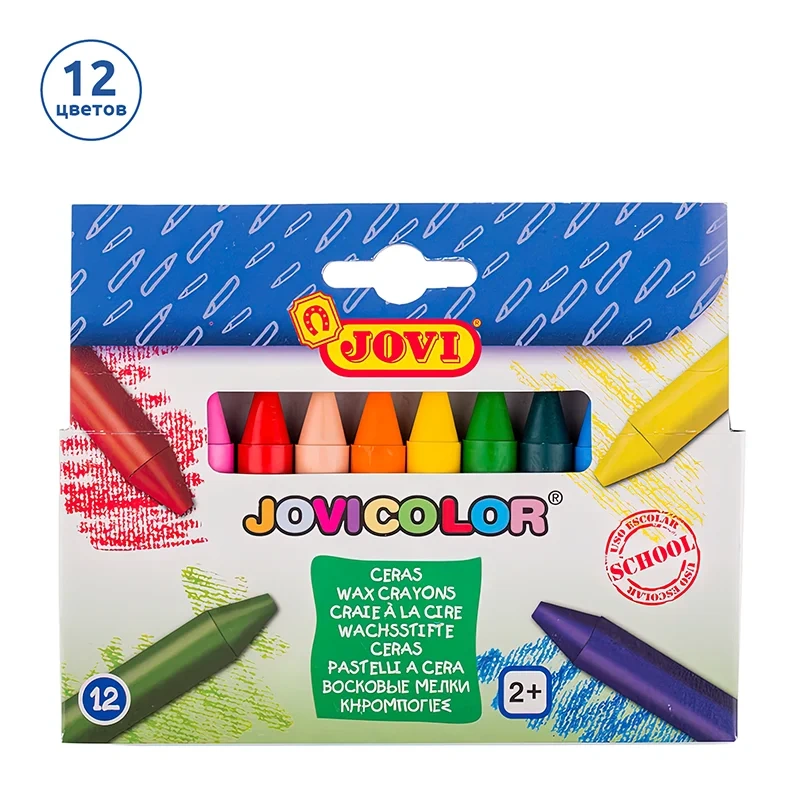 Мелки восковые JOVI, 12цв., трехгранные, картон, европодвес